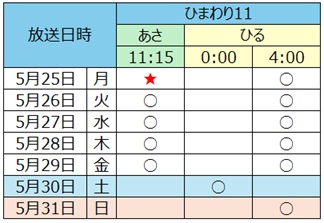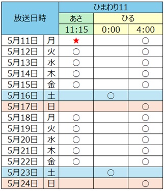 ❖ 放送チャンネル:ひまわり11