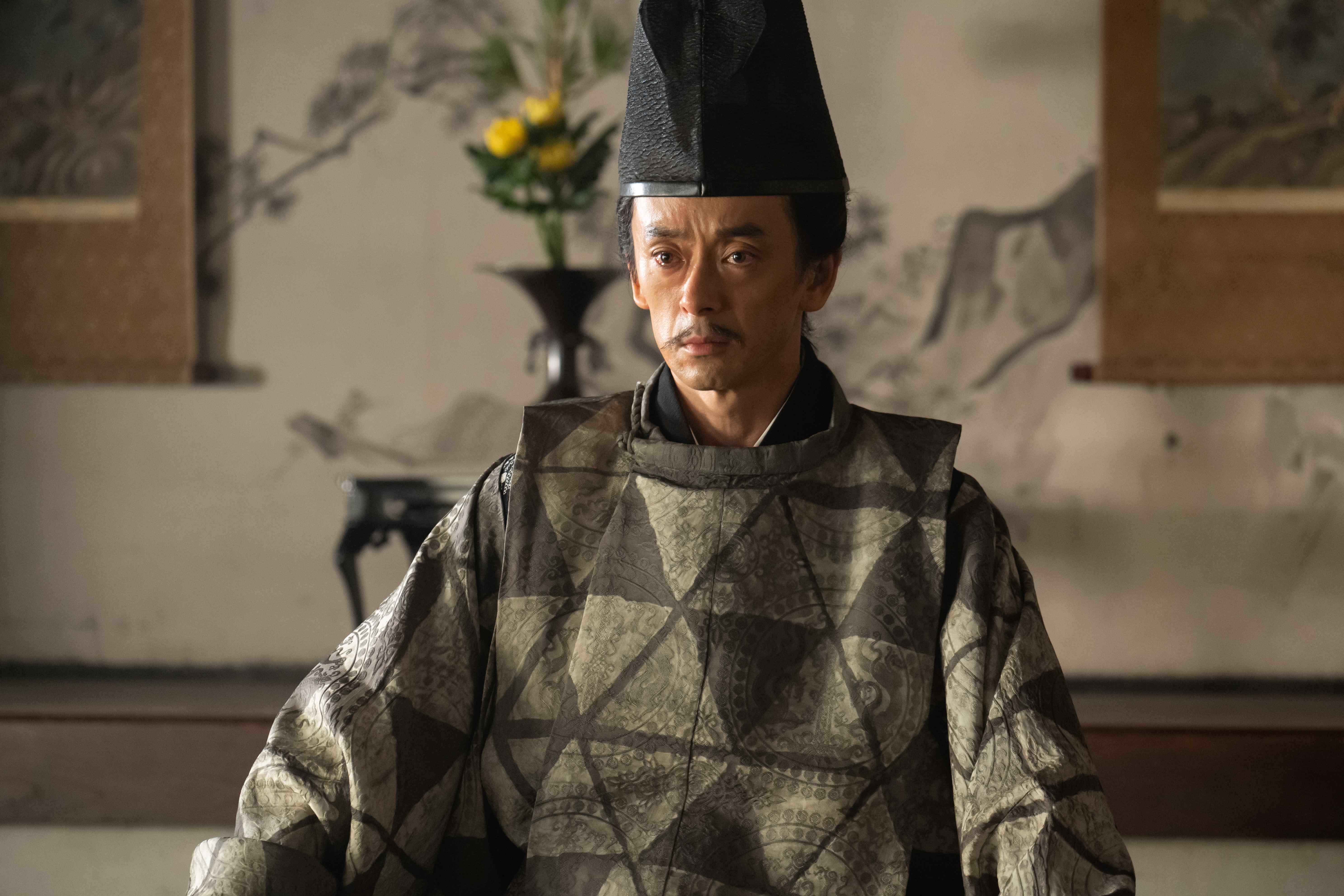 大坂本願寺攻めの最前線から、突如、松永久秀(吉田鋼太郎)が逃亡をはかり、織田方に衝撃を与える。伊呂波太夫(尾野真千子)の導きで松永と会い、なぜいま離反するのか問いただす光秀(長谷川博己)。筒井順慶(駿河太郎)に大和の守護の座を与える信長(染谷将太)の、家筋を重んじる態度が許せないという松永は、自分に大和を任せる本願寺側につくと明言する。