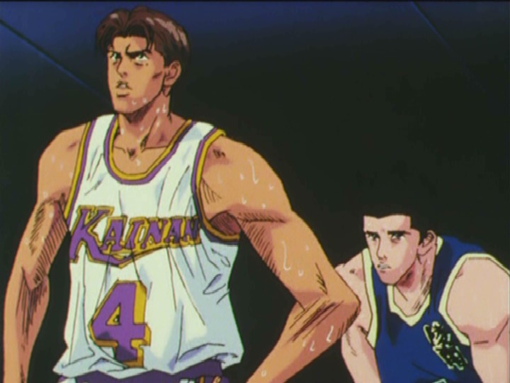 審判への抗議でテクニカルファウルを取られた魚住は、5ファウルで痛恨の退場処分を受けた。その間に海南が逆転するものの、自分がチームを支えようと奮闘する仙道が牧に食いつき、ほぼ一騎討ちの状態でシーソーゲームに突入する。