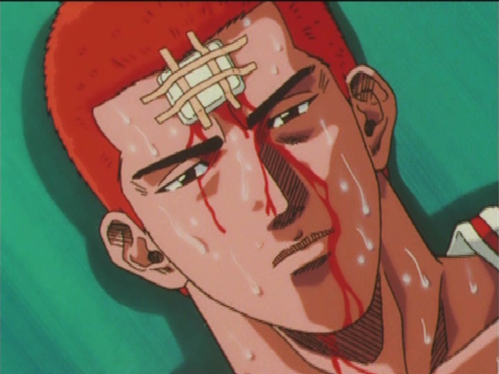 魚住に倒されたまま、ピクリとも動かない花道。その様子から彼が試合中にも関わらずキレたのだと洋平たちは察知し、すばやい処置を施したためどうにか乱闘という最悪の事態は回避する。続いて赤木もゴリラダンクを決めることで完全復活をアピールしたのだった。