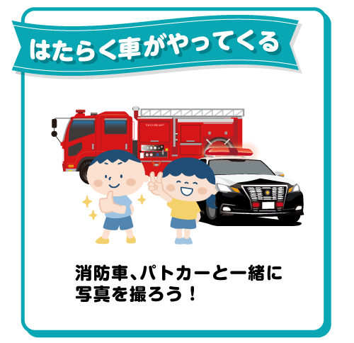 消防車、パトカーと一緒に写真を撮ろう!