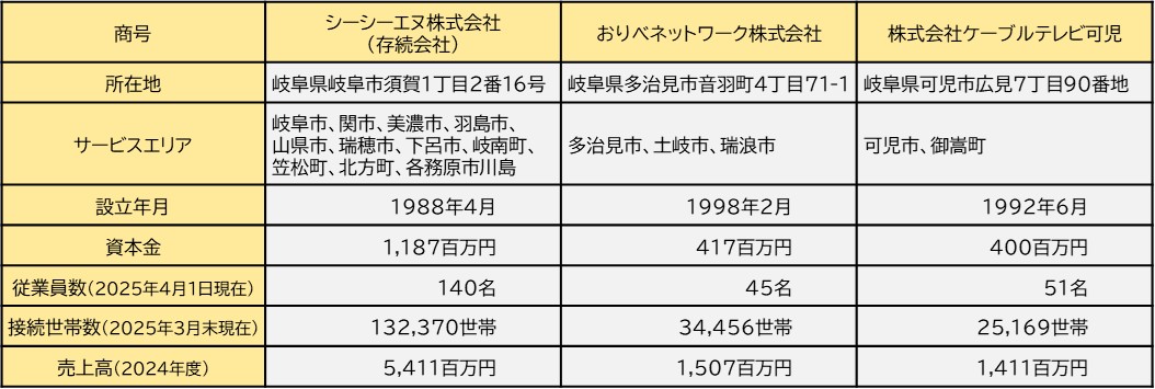 ひまわりネットワーク株式会社(本社:豊田市、代表取締役 堀井敦、以下「ひまわり」)及びひまわりグループのシーシーエヌ株式会社(本社:岐阜市、代表取締役 伊藤英明)、おりべネットワーク株式会社(本社:多治見市、代表取締役 伊神和浩)、株式会社ケーブルテレビ可児(本社:可児市、代表取締役 谷口公一)の岐阜県内3社は、会社統合について合意に至り、岐阜県内3社は、経営基盤の強化により市場競争力を高めることを目的として、2026年10月1日を効力発生日とする合併についての基本合意書を本日付で締結しました。