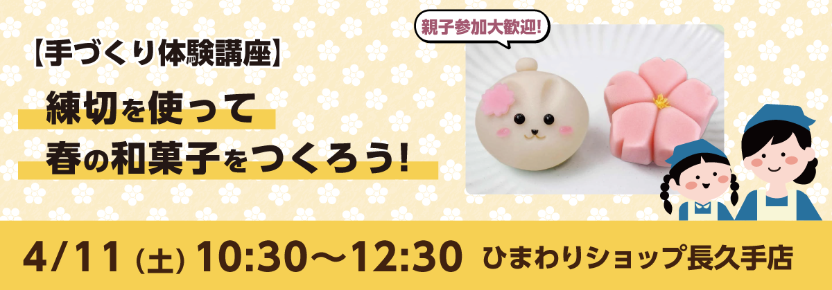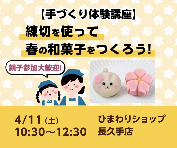 【手づくり体験講座】練切を使って春の和菓子を作ろう! 親子参加大歓迎!(長久手店 4/11開催)