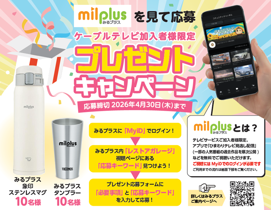 ※みるプラス(milplus)とは、ケーブルテレビご加入者様向けに提供する動画配信サービスです。
