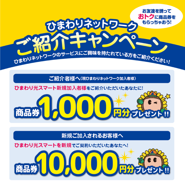 ・当キャンペーンは、ひまわりネットワークご加入者様のみのキャンペーンとなります。