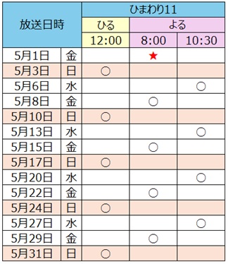 5月1日(金)よる8:00~ 【再】毎週(日)ひる0:00~