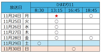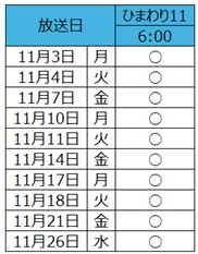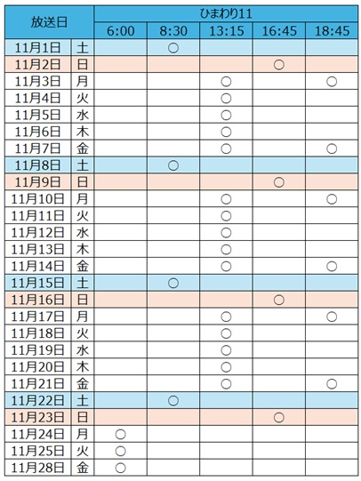 11月の放送スケジュール