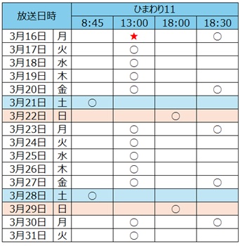 ❖放送チャンネル ひまわり11