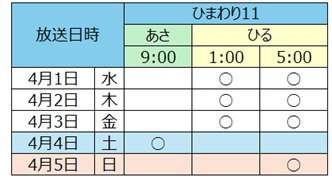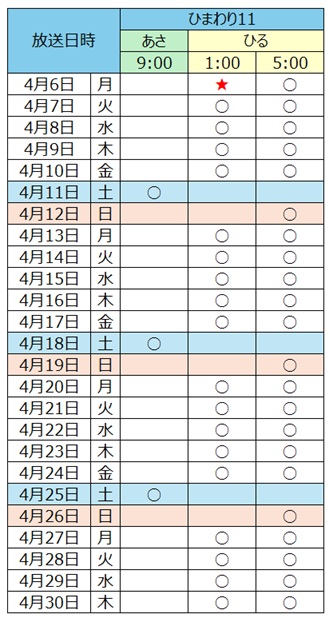 4月の放送スケジュール