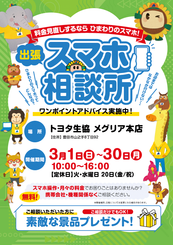 ひまわりのショップまではなかなか行けない、ひまわりのスマホってどんなのか気になる! そんなお客様のために”スマホ相談所”を出張開催!! お客様のご要望に合わせた料金プランをご提案します!!!