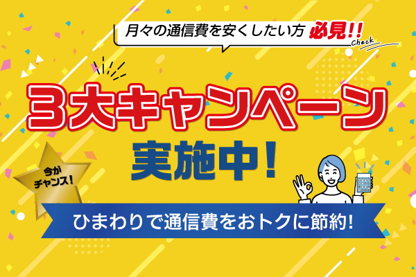 ひまわりで通信費をおトクに節約「3大キャンペーン」実施中!