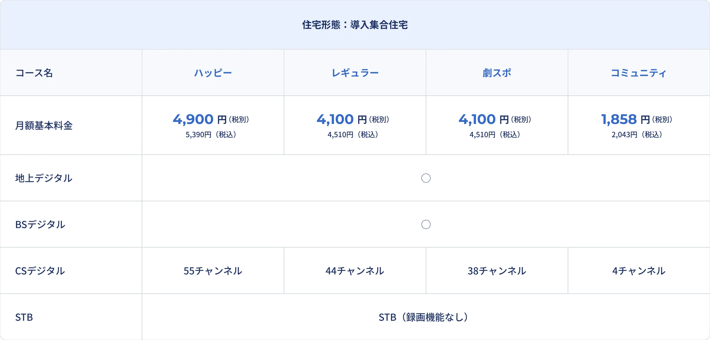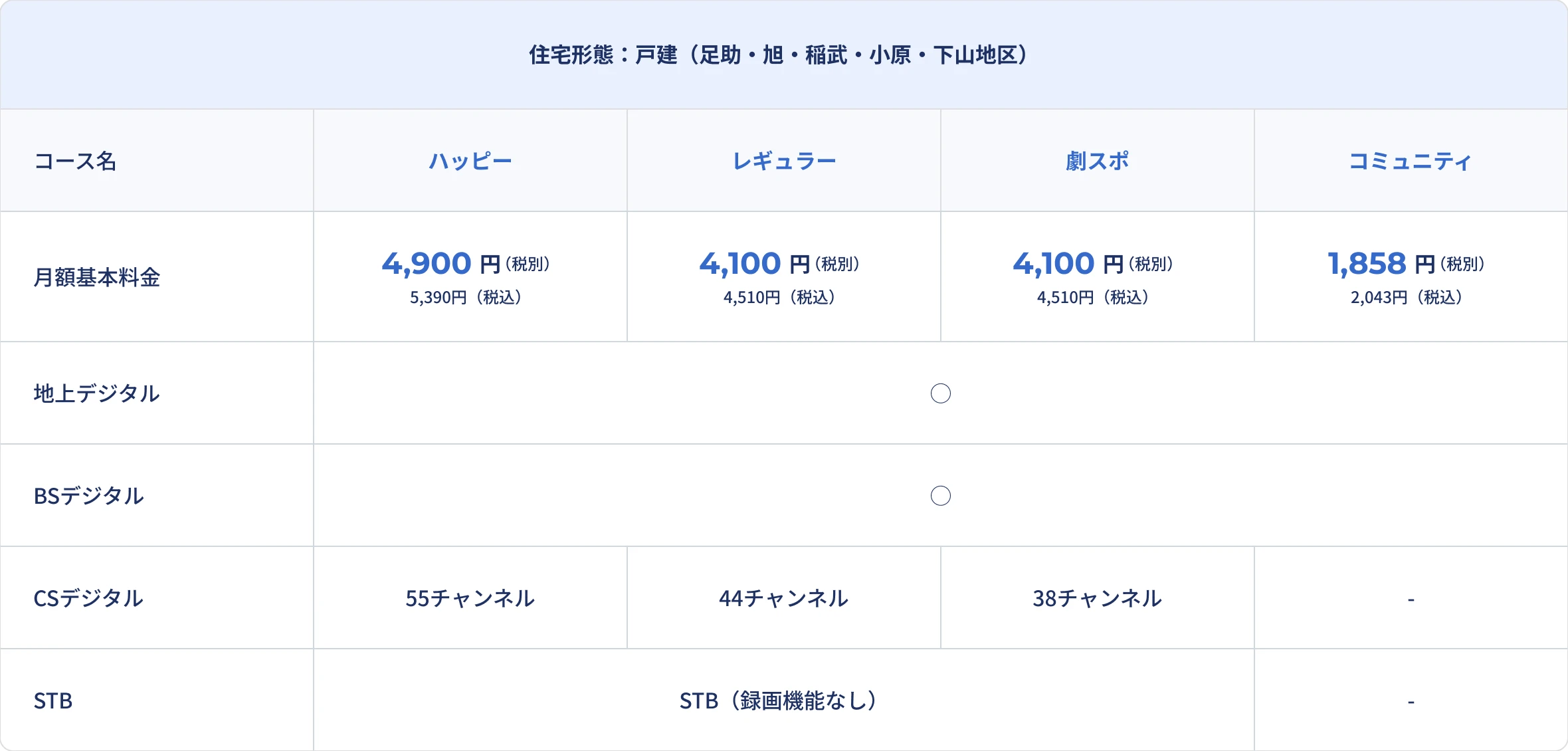 • コミュニティコース(戸建)・2台目以降は、+500円(税込550円)、スマートパックは、+800円(税込880円)にてご利用いただけます。