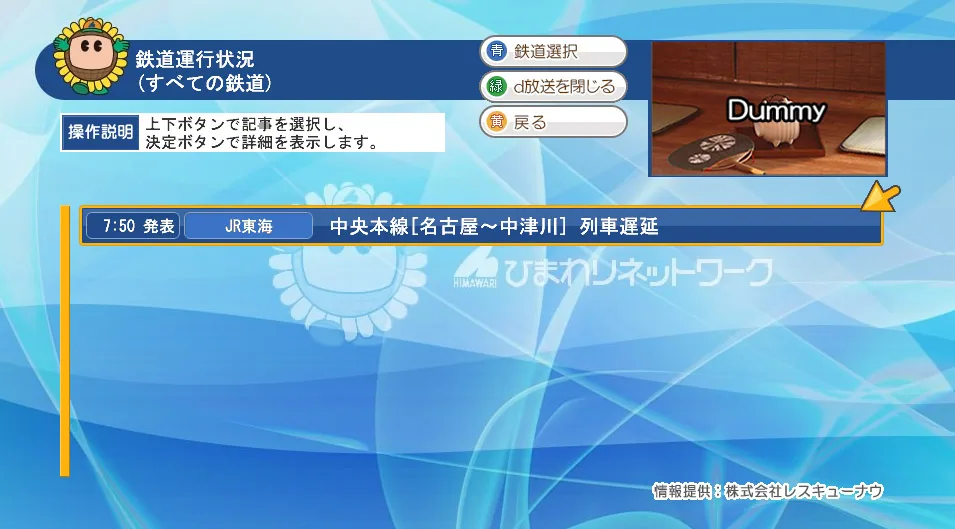 • データ放送ですぐに確認!災害時の緊急情報