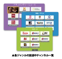 ドラマ・映画・音楽など、9ジャンルに分類された番組を一覧で表示。