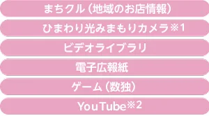 • YouTubeは、一部機種ではご利用いただけません。YouTubeのご利用には、ひまわり光ネットへのご加入が必要です。
