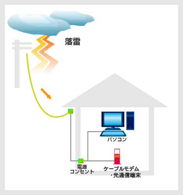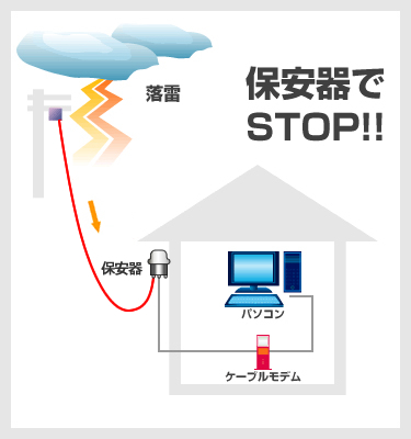 雷サージによりケーブルモデム・光通信端末やパソコン機器などが破壊される確率を減少することができます。